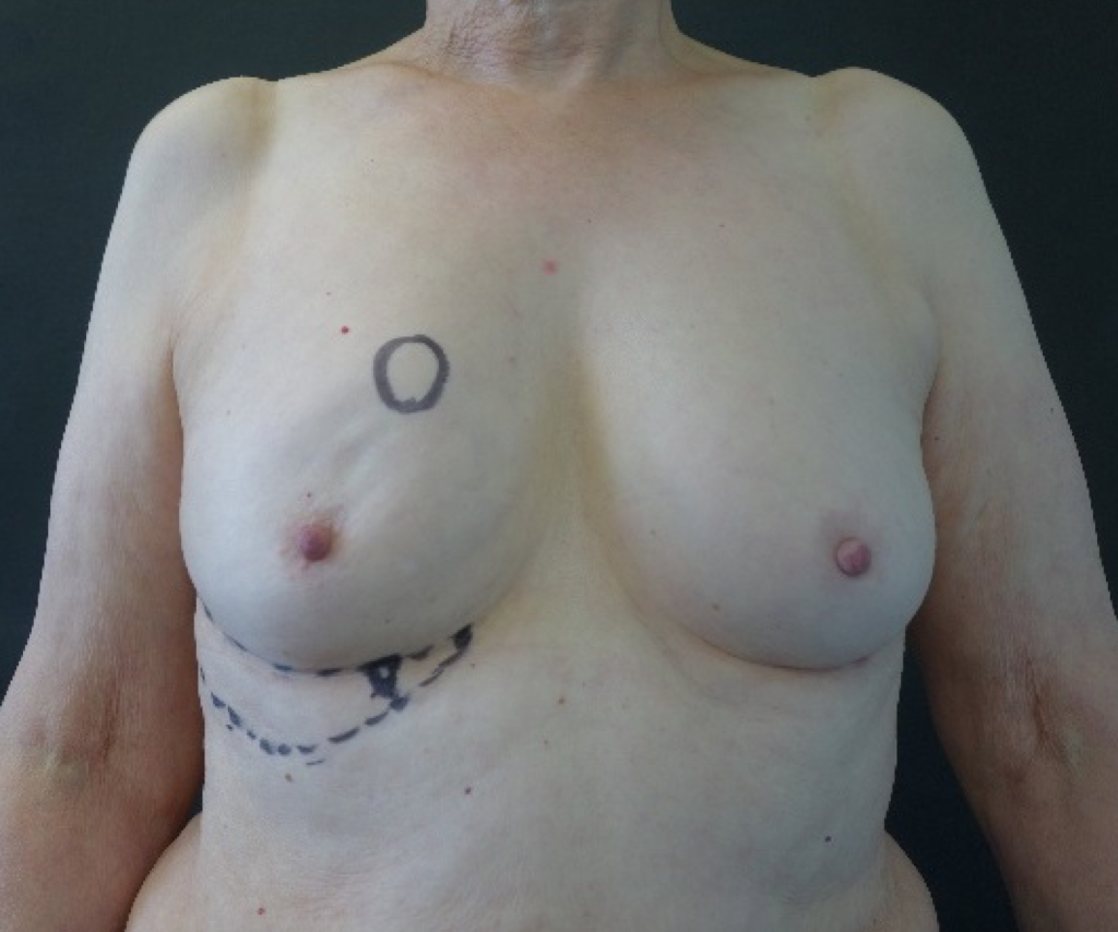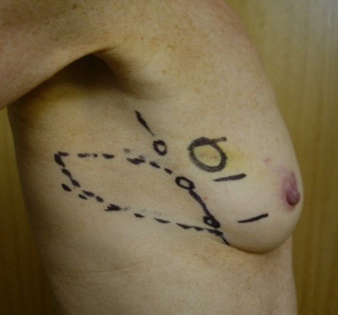 Left wide local excision of breast cancer with small LICAP flap and radiotherapy