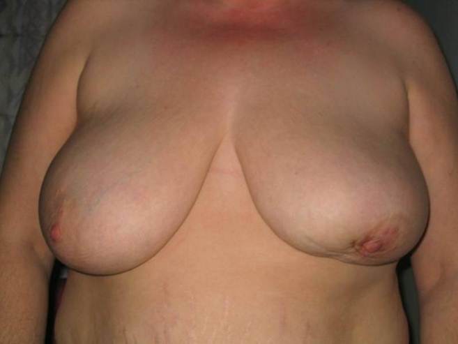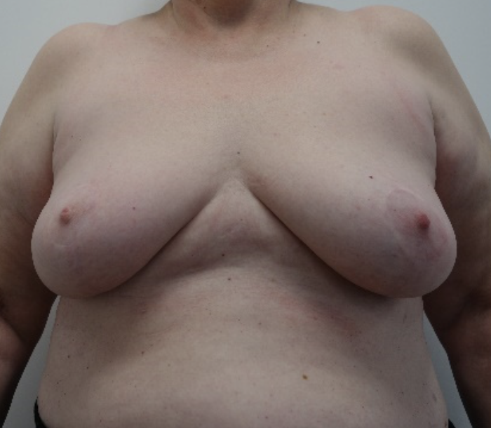 Left wide excision of breast cancer with simplified breast reduction removing both nipples
