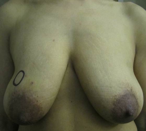 Right wide local excision of breast cancer with breast lift and radiotherapy